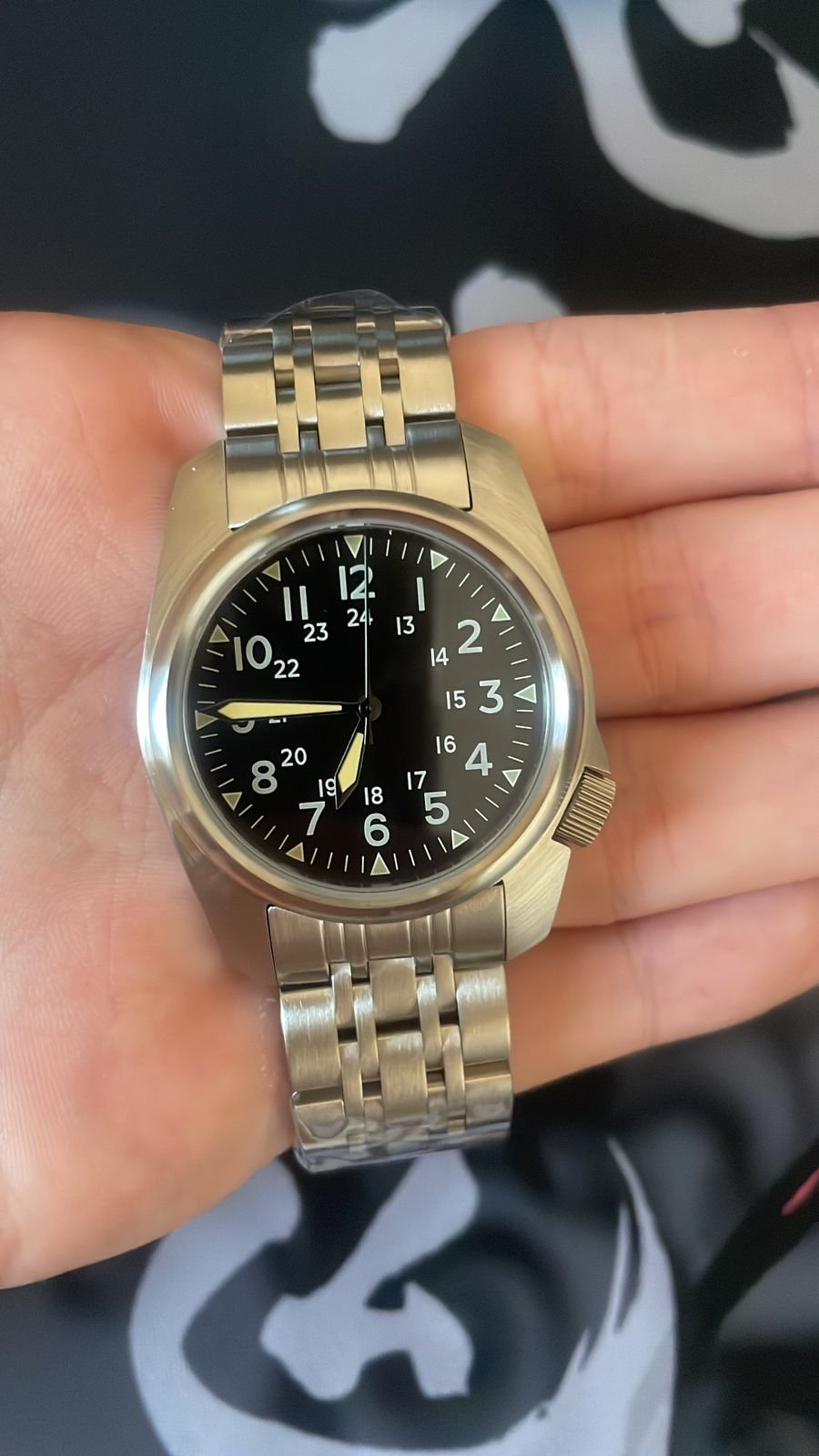 Com vidro de cristal de safira, altamente resistente a riscos, e movimento japonês Miyota 2035, referência mundial em precisão, ele entrega desempenho consistente e durabilidade superior. A caixa em aço inoxidável 316L com acabamento escovado reforça o visual sofisticado com um toque vintage inspirado no estilo piloto.