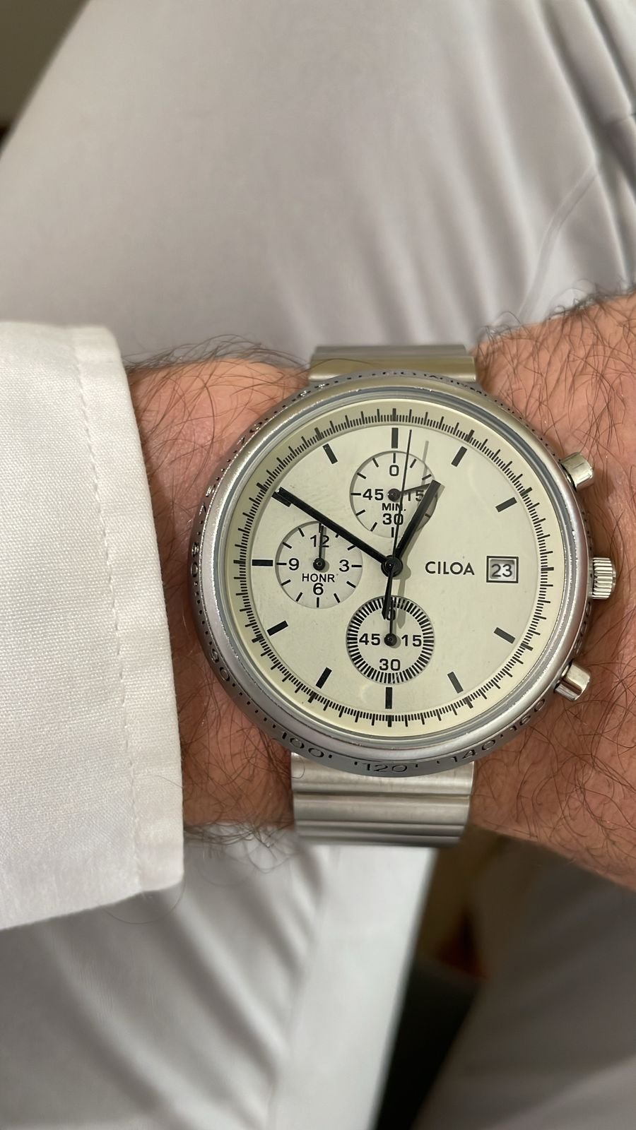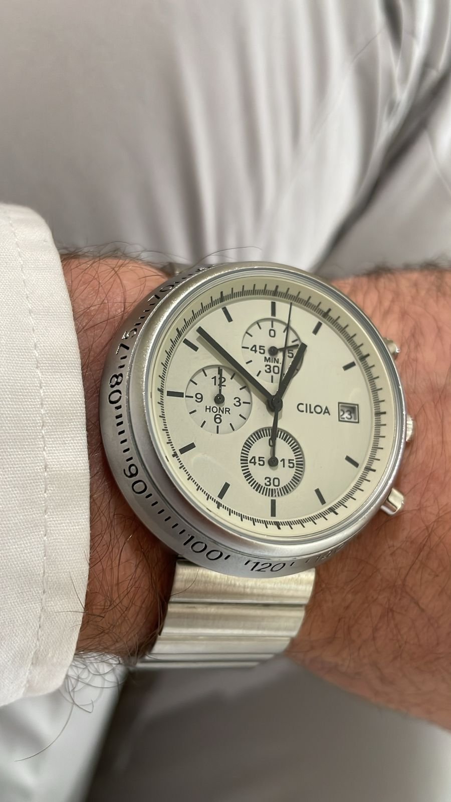 Com caixa em aço inoxidável e formato redondo, o Chronos transmite sofisticação e resistência. Seu mostrador protegido por vidro Hardlex oferece alta durabilidade contra riscos e impactos leves. O design equilibrado, com submostradores funcionais e calendário completo, traz um visual técnico e refinado ao mesmo tempo.